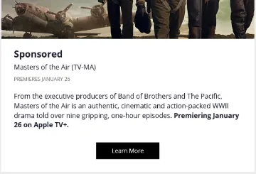 This interactive unit hosted the Masters of the Air trailer within a branded canvas that includes a Clickable Expand Gallery.