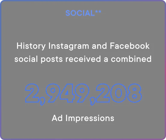 With this campaign on HISTORY, data shows that by aligning promotional elements in contextually relevant content and creating custom environments for audiences, we are capturing viewers' attention and they are spending more time watching and engaging with the partnership elements. While they may have spent less time clicking, video completion rates and time earned watching content was above internal benchmarks.