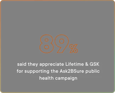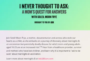In 2023, GSK, Syneos Health, Lifetime, Ad Sales Partnerships and Brand Marketing activated a custom, creative partnership across digital, social and linear footprints to spread awareness around GSK’s Ask2BSure meningitis B initiative. Hosted by Ask2BSure spokesperson Soleil Moon Frye, this campaign aimed to educate audiences and tell authentic stories. The partnership launched on digital first in a custom hub that housed an inspiring short film and short-form series, surrounded by social content and linear executions for a robust 360 campaign. Through this content we were able share authentic, raw, inspiring and educational information and stories for audiences to learn more about meningitis B.