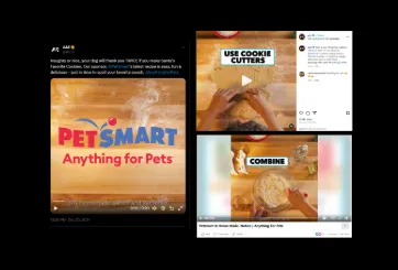 HOME.MADE.NATION x PetSmart partnered together to create a custom holiday spot to live on A&E linear, A&E social and PetSmart’s O&O. In this "hands and pans" style recipe video, HOME.MADE.NATION shared a step-by-step showing PetSmart’s newest cookie mix… for your dog! This was conveyed through visuals and designed captioning and closed with PetSmart’s logo, tagline and product visual. This partnership promoted PetSmart’s newest holiday product, Santa’s Favorite Cookie Mix for Dogs.