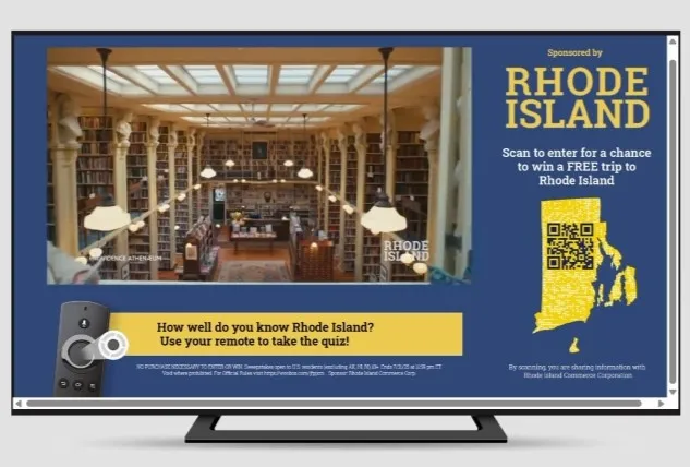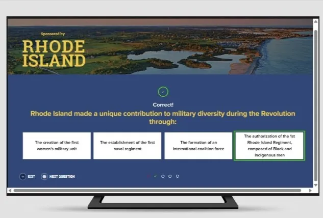 Custom CTV trivia unit inviting viewers to test their knowledge of Rhode Island history