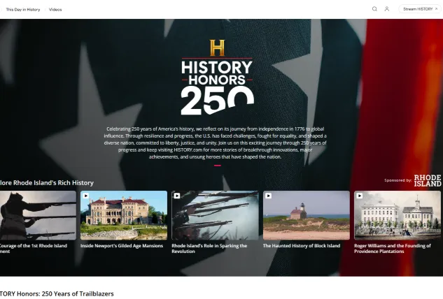 Visit Rhode Island partnered with HISTORY as a multi-year sponsor of History Honors 250, the network’s marquee initiative commemorating 250 years of the United States. Leveraging HISTORY’s trusted voice and expansive platform, the partnership brought Rhode Island’s pivotal role in American history to life through interactive CTV experiences, original digital storytelling, editorial integrations, and social amplification. Together, these touchpoints educated audiences, sparked curiosity, and positioned Rhode Island as a destination where history, culture, and discovery converge.